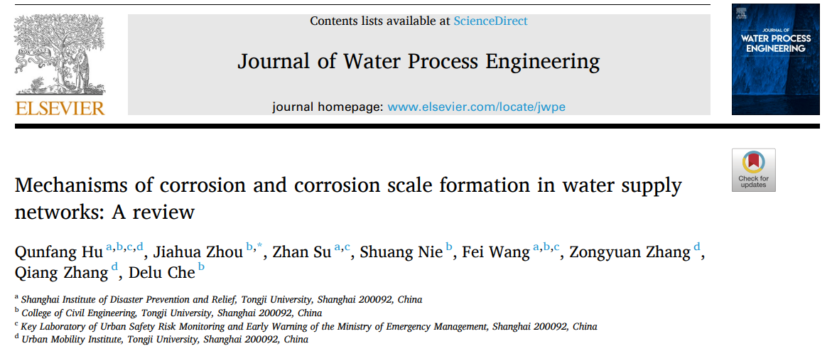 针对这一问题,HU等人开展了相关研究。其工作包括管网内部腐蚀机制、腐蚀垢层的形成与组成特征、影响垢层生长的物理化学生物因素,以及腐蚀对水质的不良影响。