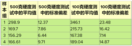 使用设备行业中通常使用的所有中间打磨和抛光步骤制备的第4组完全抛光的样品在低负荷下提供了稍高的硬度值。这种样品制备方法可以在任何高硬度和低硬度测试负载下,提供任何机械抛光技术中最准确的值。