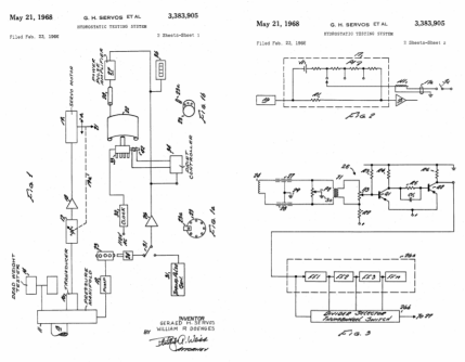 在运行中,一段管道被密封并充满水。然后启动泵,自重测试仪用于校准压力传感器。当泵运行时,压力上升,导致钢笔作为压力的函数在图表上移动,这是数字移动作为体积的函数。当一个200p.s.i,增量变化已经发生,笔已经遍历了在电位器17的影响下,E图表再次返回到左手边距,从而生成一系列平行对角线;当达到弹性极限时,李然后生成的Ne不再平行于其他行。